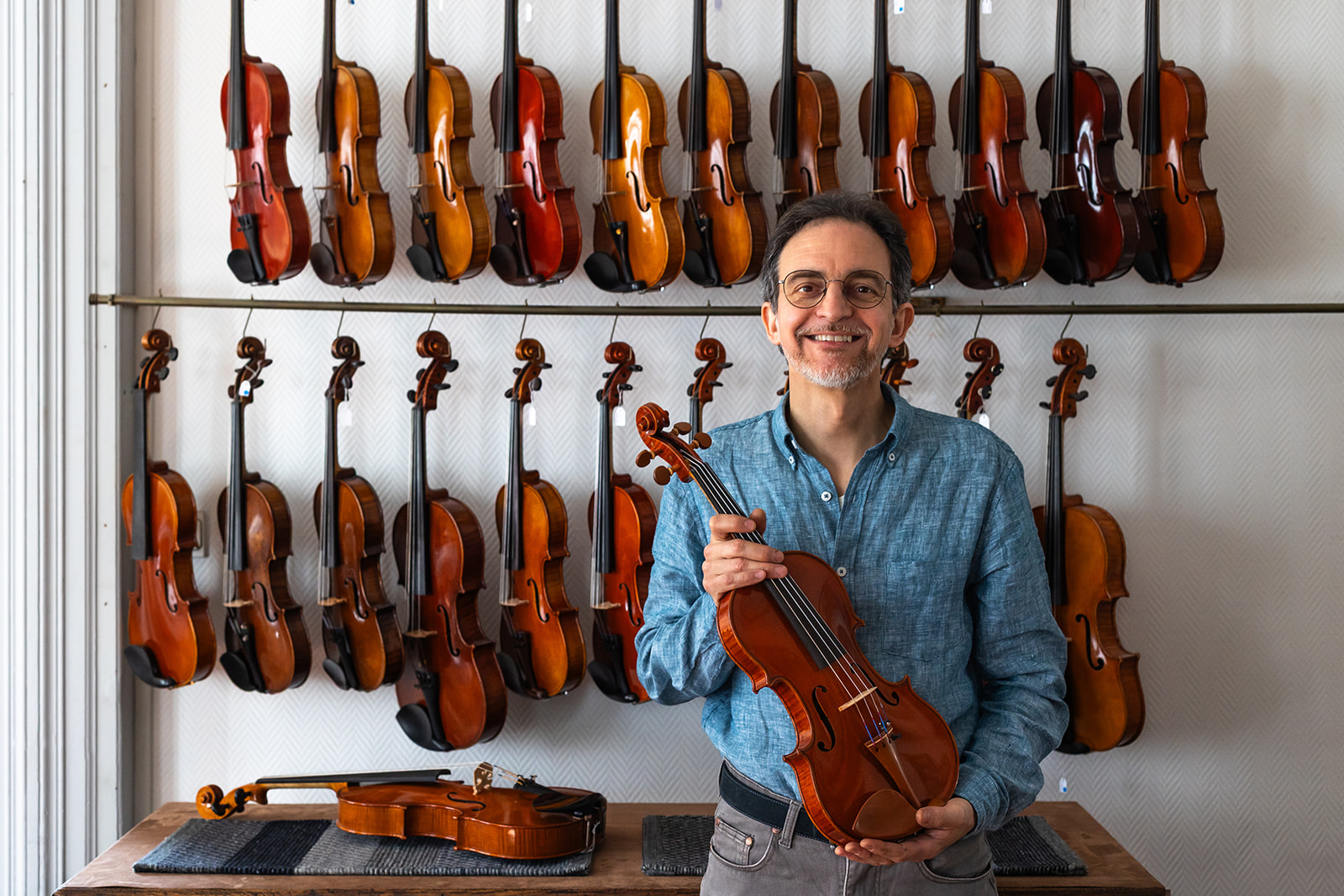 Je propose une sélection d’instruments choisis avec soin : des pièces anciennes, comme il est de tradition en lutherie ; des instruments d’auteur contemporains, réalisés par des confrères dont j’apprécie le travail ; et des instruments d’étude réglés pour accompagner sereinement les élèves. Une offre simple, cohérente, pensée pour chaque musicien.
